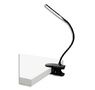 En ABS métal et silicone. Bras flexible, pince sur la base pour une accroche ferme, adaptable à tous supports (ouverture maximale : 7,5 cm). Sans fil, rechargeable via câble USB (câble fourni), 10h d'autonomie. Bouton tactile " Touch Control ", 3 niveaux d'intensité. Led intégrée, 2,8 W, 120-150 lumens, 6 000 kelvins, 25 000h. Dimensions : Tête : 15x3 cm – Bras : 26 cm – Base : 12x6 cm.