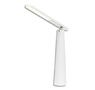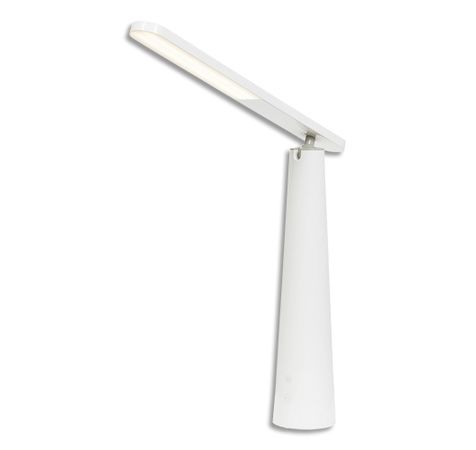 En ABS glossy blanc et gris. Tête réglable. Sans fil, rechargeable via câble USB (câble fourni), 2h30 d'autonomie. Bouton tactile, variateur d'intensité, 3 niveaux de température (bleu/blanc/jaune). Led intégrée, 4 W, 110 lumens, 2 700 – 6 500 kelvins, 25 000h. Dimensions : Hauteur totale : 42 cm – Tête : 35x4 cm – Base : Ø7x30 cm.