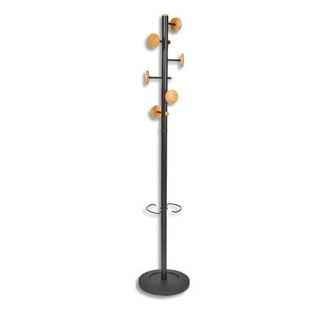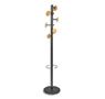 Elégante alliance du métal et du bois. Se compose de 6 patères large diamètre et 3 mini patères pour accessoires ; Porte-parapluies : capacité x 6. Base lestée de 5 kg avec socle de rétention d'eau. Assemblage facile sans outil. Dimensions : H.175 cm / Base 35,5 cm.