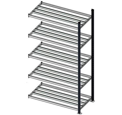 Idéal pour le stockage de bacs, petites pièces et produits divers. Montants de hauteur 200 cm époxy gris anthracite, sans perforation en façade, acier 8/10 profilé à froid, 10 plis. Tablette tubulaire de longueur utile 94 cm, finition galvanisée ayant une capacité de charge de 175 Kg UR par niveau. 5 niveaux pour les profondeurs 40 et 60 cm. Embouts plastique aux pieds pour éviter le poinçonnement du sol. Facile à monter. En option plateaux de recouvrement.