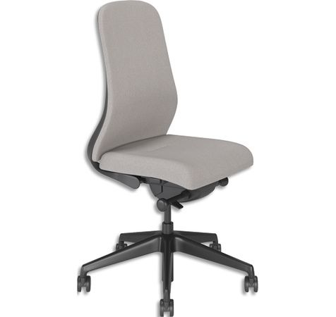 Fauteuil synchrone. Inclinaison synchrone du dossier (à 23°) par rapport à l'assise (à 10°), dossier blocable en 5 positions. Tension de retour de dossier réglable en 7 positions. Assise réglable en profondeur sur 60 mm blocable en 7 positions. Structure et contre-coque assise réalisées en polypropylène (PP) recouverte de mousse injectée, épaisseur 59 mm et densité 55-60 kg/ m³. Assise tapissée de tissu 100 % polyester – Oeko-Tex Standard 100, classé non feu EN1021.1 et 2. Dossier : cadre en polyamide renforcé de fibre de verre. Piètement 5 branches en polyamide noir Ø 710 mm, avec roulettes auto-freinées Ø 60 mm. Appuie-tête et accoudoirs en option. Assise dimensions (l x p ) : 48 x 42-48 cm. Dossier (x h) : 48 x 60 cm.