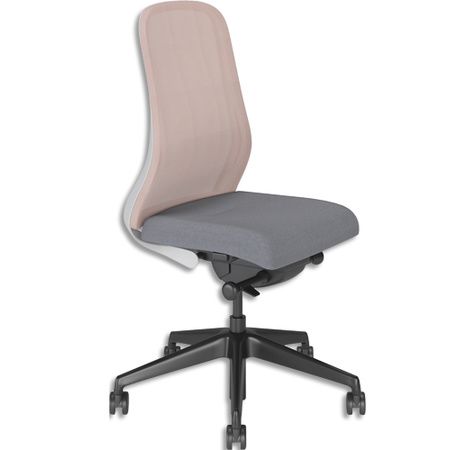 Fauteuil synchrone. Inclinaison synchrone du dossier (à 23°) par rapport à l'assise (à 10°), dossier blocable en 5 positions. Tension de retour de dossier réglable en 7 positions. Assise réglable en profondeur sur 60 mm blocable en 7 positions. Structure et contre-coque assise réalisées en polypropylène (PP) recouverte de mousse injectée, épaisseur 59 mm et densité 55-60 kg/ m³. Assise tapissée de tissu 100 % polyester – Oeko-Tex Standard 100, classé non feu EN1021.1 et 2. Dossier : cadre en polyamide renforcé de fibre de verre. Piètement 5 branches en polyamide noir Ø 710 mm, avec roulettes auto-freinées Ø 60 mm. Appuie-tête et accoudoirs en option. Assise dimensions (l x p ) : 48 x 42-48 cm. Dossier (x h) : 48 x 60 cm.