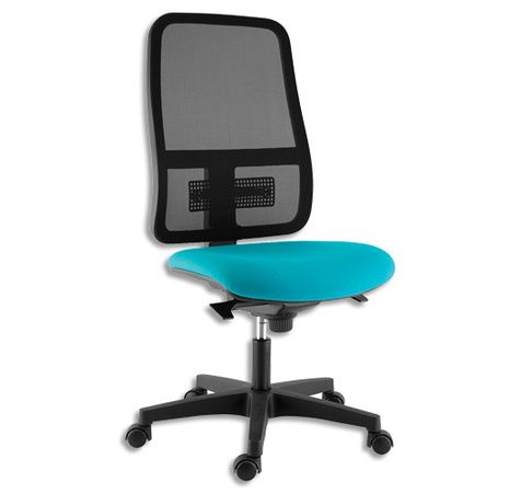 Siège à mécanisme synchrone dossier résille fixe et renfort lombaire réglable en hauteur. Tension du dossier personnalisable, blocage multi positions et système anti-retour. Assise tissu noir M1. Accodoirs 1 D en option. Dimensions assise (l x p) : 49 x 47 cm. Dossier (l x h) : 48 x 62 cm