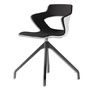 Coque en plastique et piètement pyramide en métal noir. Assise tissu Bondai noir M1. Piètement pyramide. Dimensions totales : H.80 x P.53 x L. 55 cm.