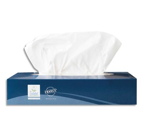Boite distributrice de 100 mouchoirs blanc, pure ouate de cellulose, 2 plis. Format : 19,7 x 20 cm.