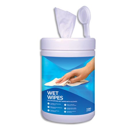 Grandes lingettes tissées, plus résistantes que les lingettes papier classique. Haute concentration d'alcool pour un nettoyage plus efficace. Dimensions : 13 x 17 cm.