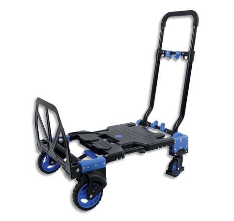 Combiné chariot / diable avec bavette 250 cm. Fabriqué en aluminium et en PP ce chariot a la caractéristique d'être entièrement repliable pour faciliter son transport avec un poids de 7,4 kg. Sa capacité de chargement est de 68 kg en configuration diable et de 135 kg en mode chariot.