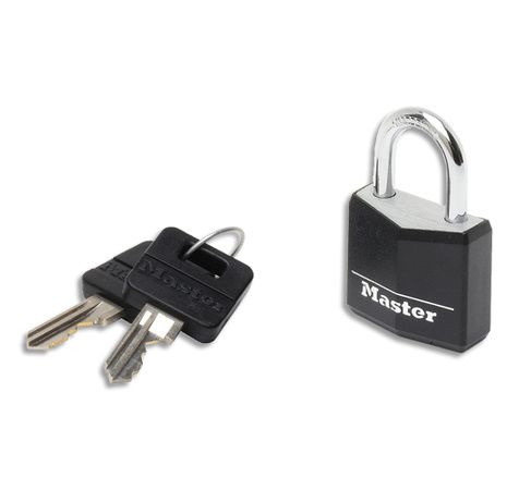 Cadenas en aluminium recouvert vinyle noir largeur 30 mm. Livré avec 2 clés. Sous blister