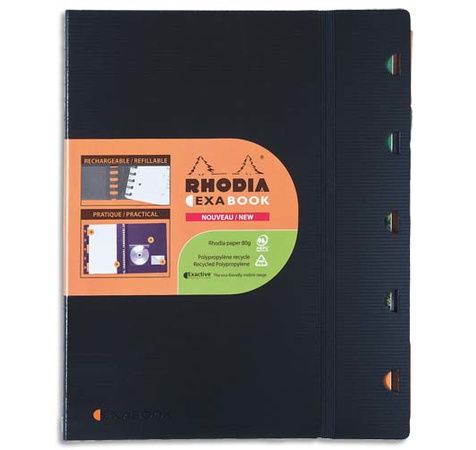 Cahier Rechargeable Exabook Spirale 160 Pages 90G 5X5 22,5X29,7cm Couverture Polypro Noire