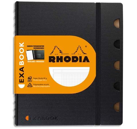 Cahier Rechargeable Exabook Spirale 160 Pages 90G 5X5 16X21cm (A5+) Couverture Polypro Noire