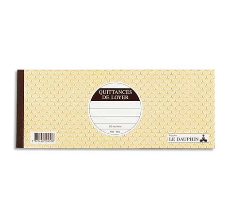 Carnet Quittance De Loyer À Souche 11X27,5 cm 50 Feuillets
