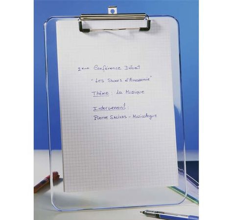 En plastique transparent. Pince métallique renforcée grande capacité.