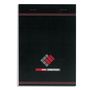 200 pages détachables par micro perforations. Bloc agrafé en-tête. Couverture protectrice en carte 230g. Support (sole) cartonné rigide pour faciliter l'écriture en position debout. Papier 70g, quadrillé 5x5.
