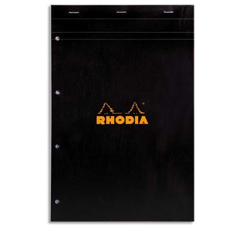 Couverture enduite orange ou noire. Format 21 x 31,8 cm (A4+). Dos rigide cartonné. 160 pages (80 feuilles) perforées 4 trous (80 mm) détachables par micro perforation. Papier certifié PEFC, vélin surfin 80 g blanc.