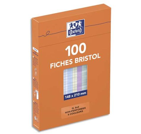 Etui de 100 fiches bristol non perforées 210g A5 quadrillées 5x5 assorties