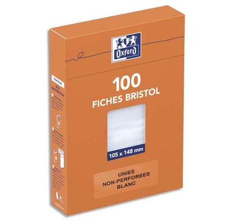 Etui de 100 fiches bristol non perforées 210g A6 unies coloris blanches