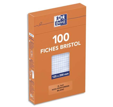 Etui de 100 fiches bristol non perforées 210g 125x200mm quadrillées 5x5 blanches