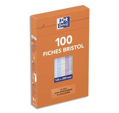 Etui de 100 fiches bristol non perforées 210g 125X200mm quadrillées 5x5 assortie