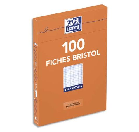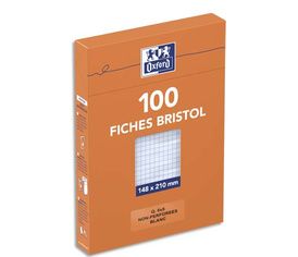 Etui de 100 fiches bristol non perforées 210g A4 quadrillées 5x5 blanches