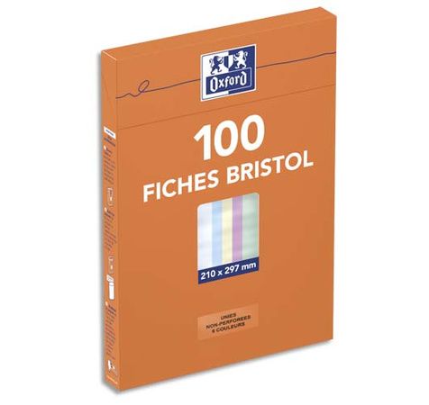 Etui de 100 fiches bristol non perforées 210g A4 unies assorties