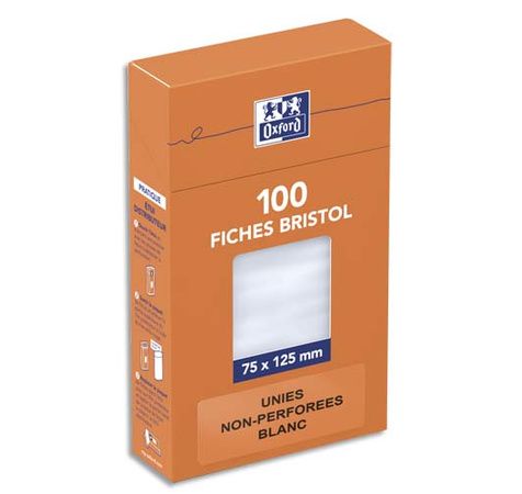 Etui de 100 fiches bristol non perforées 210g 75x125mm unies blanches