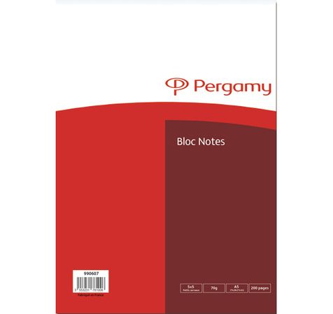 200 pages détachables par micro perforations. Blocs agrafé en-tête. Papier 70 g quadrillé 5x5.
