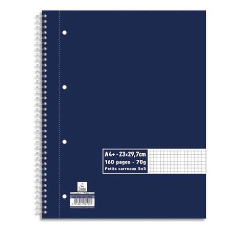 Cahier de bureau spiralé A4+ 160 pages 70gr 5x5 couverture carte vernie