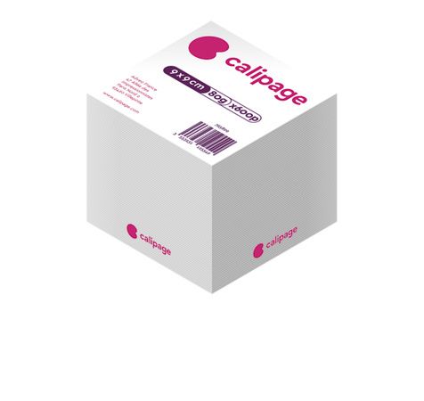 Bloc cube sérigrafié de 600 feuilles encollées. Papier blanc 80 g.
