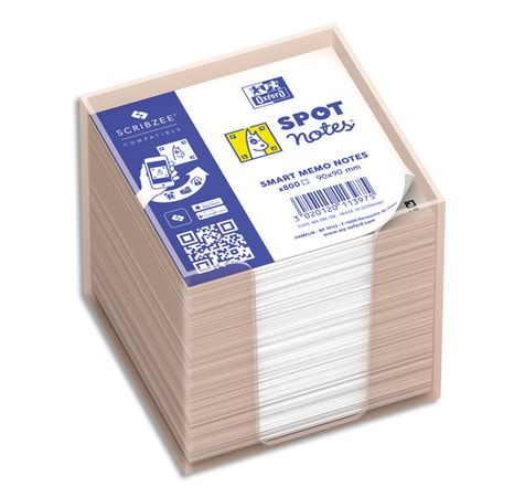 Bloc cube 680 feuilles blanches SCRIBZEE 9X9cm avec distributeur plastique gris