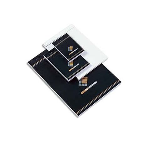 200 pages détachables par micro perforations. Bloc agrafé en-tête. Couverture protectrice en carte 230g. Support (sole) cartonné rigide pour faciliter l'écriture en position debout. Papier 70g, quadrillé 5x5.