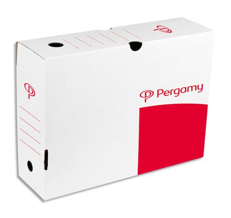 Boîte archives dos de 10 cm, montage auto, kraft blanc imprimé rouge