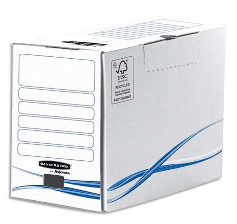En carton ondulé blanc imprimé bleu 100 % recyclé et recyclable. Zones d'indexation et oeuillets de préhension. Dimensions : 33 x 25 cm.