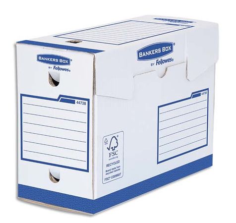 BANKERS BOX Boîte archives dos de 20 cm HEAVY DUTY. Montage manuel, en carton blanc/bleu.
