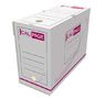 En carton ondulé recouvert de papier blanc, rigide et très robuste. Indexations sur 3 faces. 100% recyclé et recyclable.