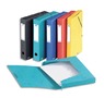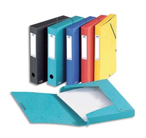 En carte grainée 7/10e, 600 g. Rabats rivetés pour une meilleure solidité. Etiquette de dos. Fermeture par élastique.