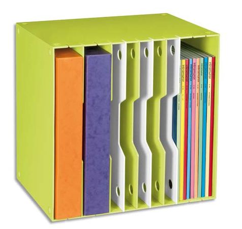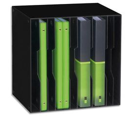 En polystyrène choc. Utilisation verticale ou horizontale. Superposable. 12 compartiments pour documents 24 x 32 cm. Dimensions (l x h x p) : 35 x 35 x 25 cm. Cloisons amovibles, réglables tous les 2,5 cm. Couleur : Vert