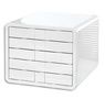 5 tiroirs fermés. Système de fermeture novateur. Livré avec des étiquettes d'indexation. Design soigné, qualité supérieure. Dimensions (l x h x p) : 29,5 x 24,7 x 35,5 cm. Couleur : Blanc