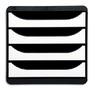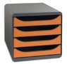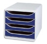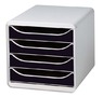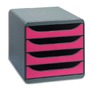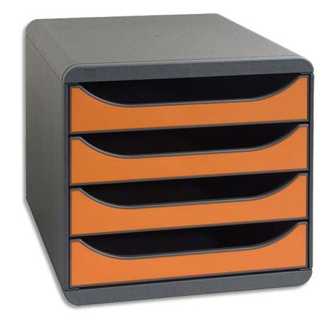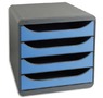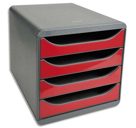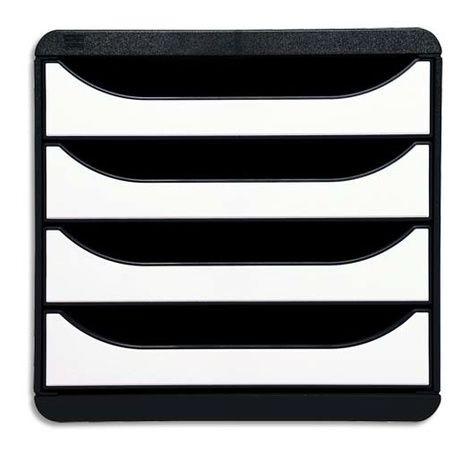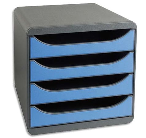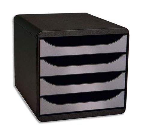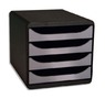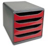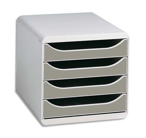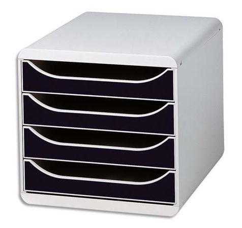 En polystyrène choc. Caisson individuel à 4 tiroirs (hauteur 4,4 cm) pour documents au format A4+ (24 x 32 cm).
