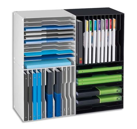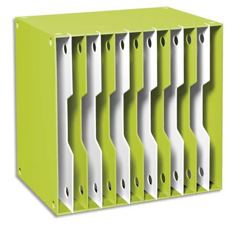 En polystyrène choc. Utilisation verticale ou horizontale. Superposable. 12 compartiments pour documents 24 x 32 cm. Dimensions (l x h x p) : 35 x 35 x 25 cm. Cloisons amovibles, réglables tous les 2,5 cm.