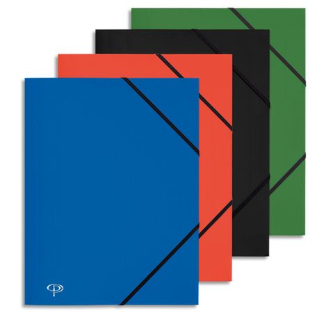 En polypropylène 4/10e. Fermeture par élastique coulissant fixé en 4ème de couverture. Dos : 2,5 cm. Dimensions : 24 x 32 cm. Pour format A4. Coloris assortis : vert, bleu, rouge, jaune et noir. Conditionnement conseillé : 20