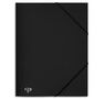 En polypropylène 4/10e. Fermeture par élastique coulissant fixé en 4ème de couverture. Dos : 2,5 cm. Dimensions : 24 x 32 cm. Pour format A4. Coloris : Noir Conditionnement conseillé : 20