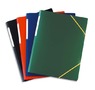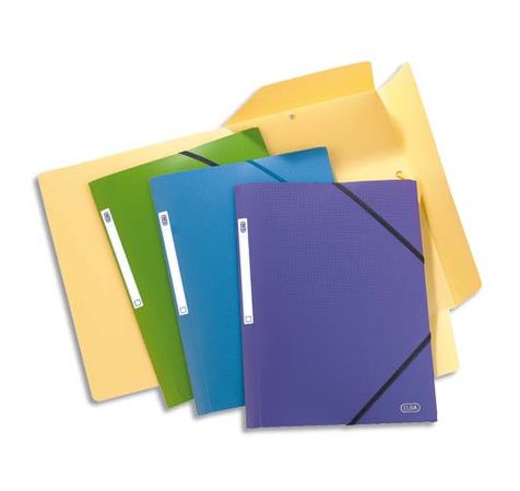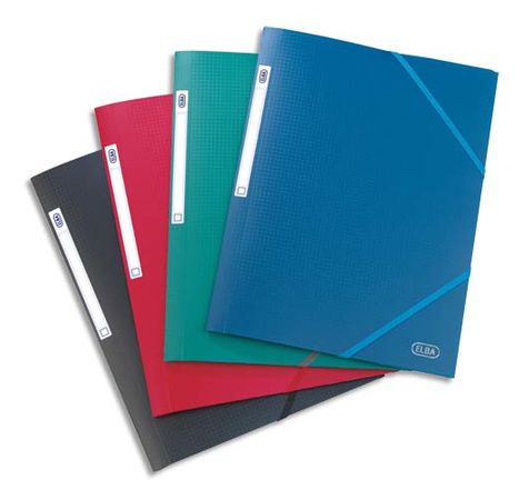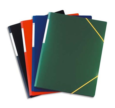 En polypropylène effet satiné anti-traces. Fermeture par élastique coulissant fixé sur 4ème de couverture. Dos : 3 cm. Etiquette de dos. Assortis Tradition : bleu, vert, rouge, noir.