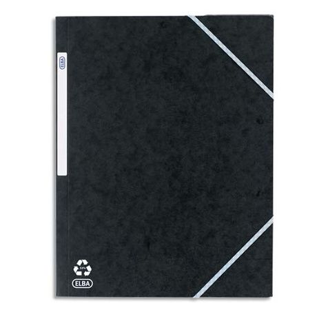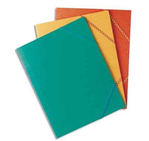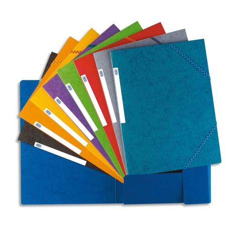En carte lustrée 5/10ème, 390g. Dos 2,5 cm. Fermeture par élastique rivetés sur la 4ème de couverture. Étiquette de dos. Dimensions : 24,5 x 32 cm. Pour format A4. Conditionnement conseillé : 50