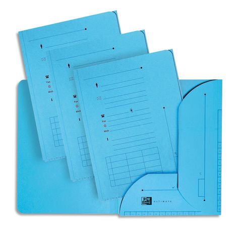 En kraft 240 g, Renforcé par des fibres de coton. 2 rabats. Couverture et rabats pré-imprimés. Dimensions : 23,5 x 31,5 cm. Pour format A4. Coloris : Bleu