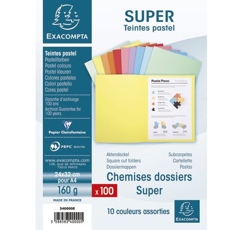 Paquet de 100 chemises SUPER 180 en carte 160 grammes coloris assortis
