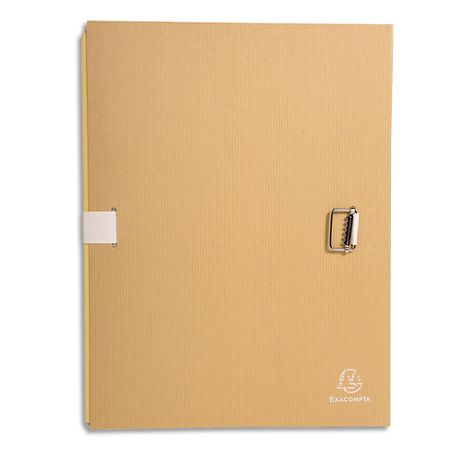 Couverture en kraft brun. Dos extensible jusqu'à 13 cm. Fermeture par sangle à boucle de couleur. Dimensions : 24 x 32 cm. Pour format A4. Conditionnement : 10 pièces