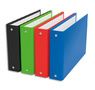 Couverture en carton recouvert de balacron avec garde blanche. Dos de 4 cm. Mécanisme 2 anneaux ronds, Ø 25 mm. Dimensions : A6 à l'italienne (10,5 x 14,8 cm). Coloris assortis : bleu roy, noir, rouge, vert. Conditionnement : 10