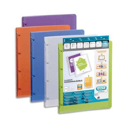 En polypropylène 1 face personnamlisable (1ère de couverture). Mécanisme 4 anneaux ronds.