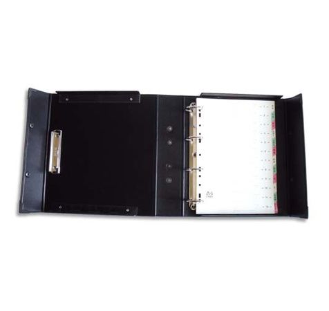 Couverture carton 24/10ème. Mécanisme 4 anneaux en D. Livrés avec 1 jeu d'intercalaires.