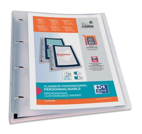 En polypropylène 8/10e. Mécanisme 4 anneaux ronds Ø 30 mm. Dos 3,5 cm. 1 face personnalisable (1ère de couverture). Sérigraphié avec effet cadre. Dimensions : 27 x 32 cm. Coloris bleu. Conditionnement conseillé : 10